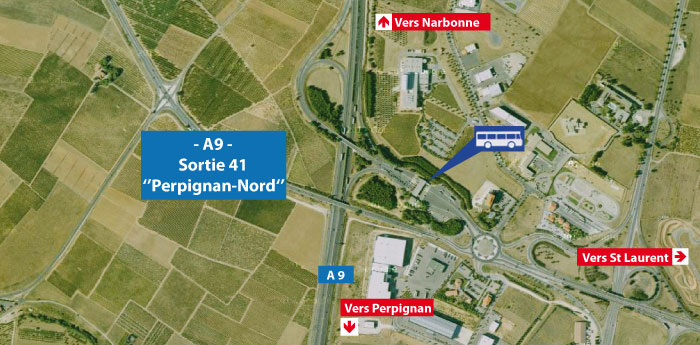Sur l'autoroute A9. Sortie 41 "Perpignan-Nord" : Rendez-vous devant le parking de co-voiturage, au péage.